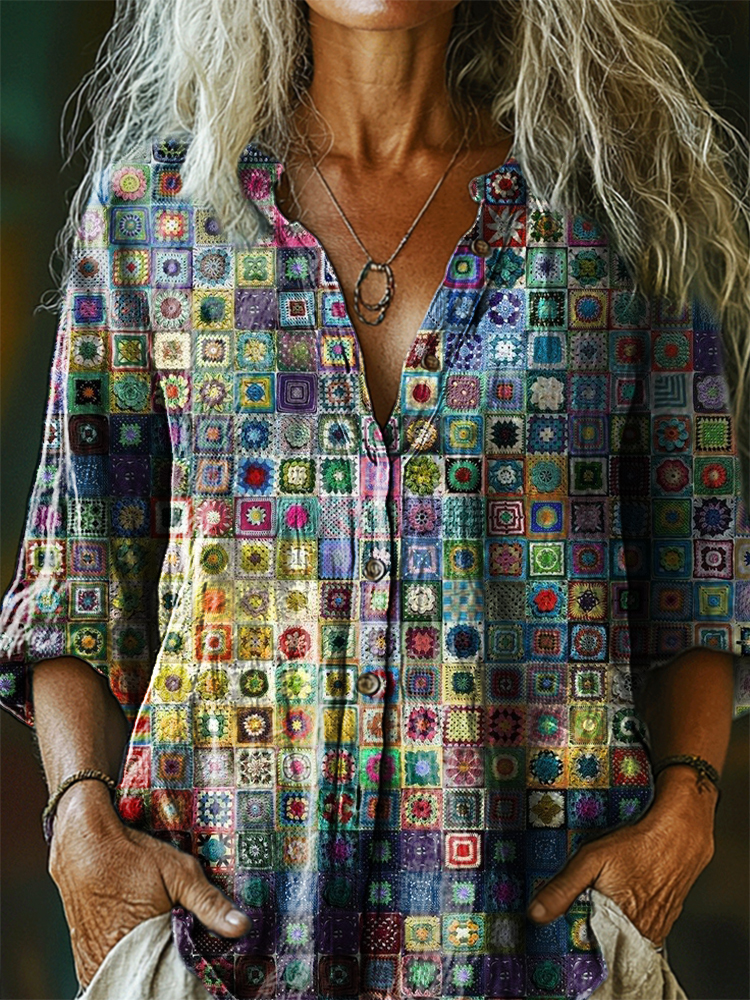 Women's Bohemian Patterns Art Print Casual Cotton Linen Shirt