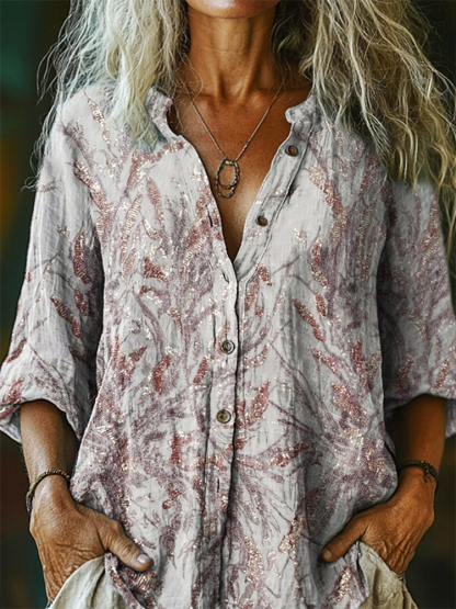 Women's Bright Crystal Tattoo Pattern Art Print Casual Cotton Linen Shirt