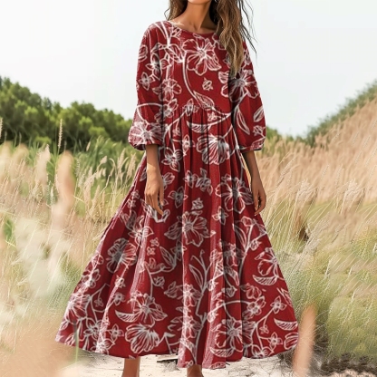 Women's Floral Art Print Cotton Crew Neck Dress