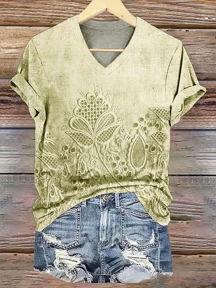 Women's Floral Art Print V-Neck Casual T-Shirt