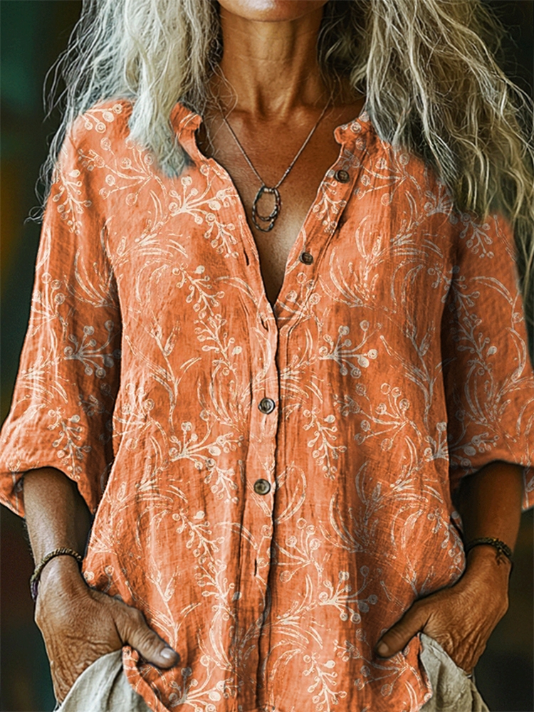 Women's Floral Pattern Art Print Casual Cotton Linen Shirt
