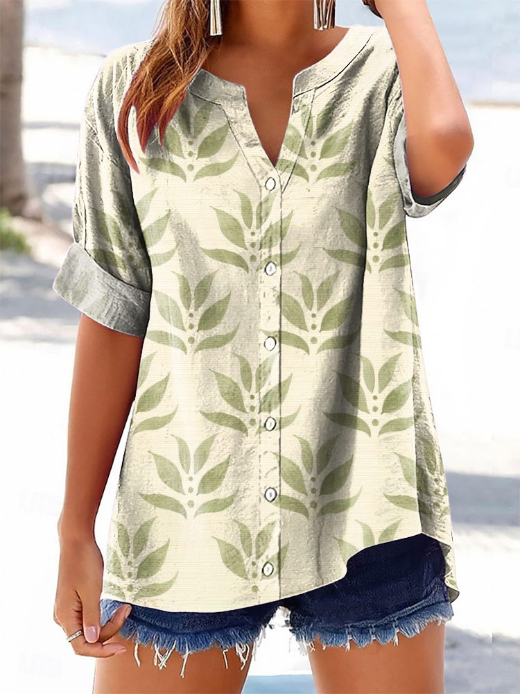 Women's Floral Pattern Art Print Cotton Linen Casual Shirt