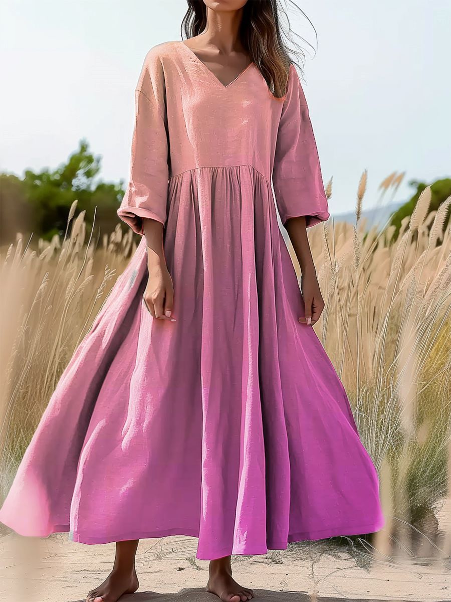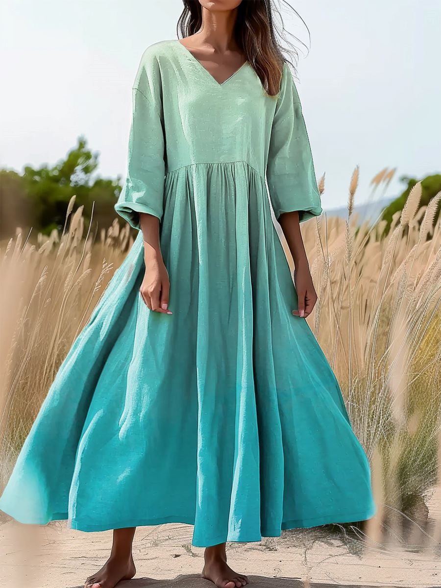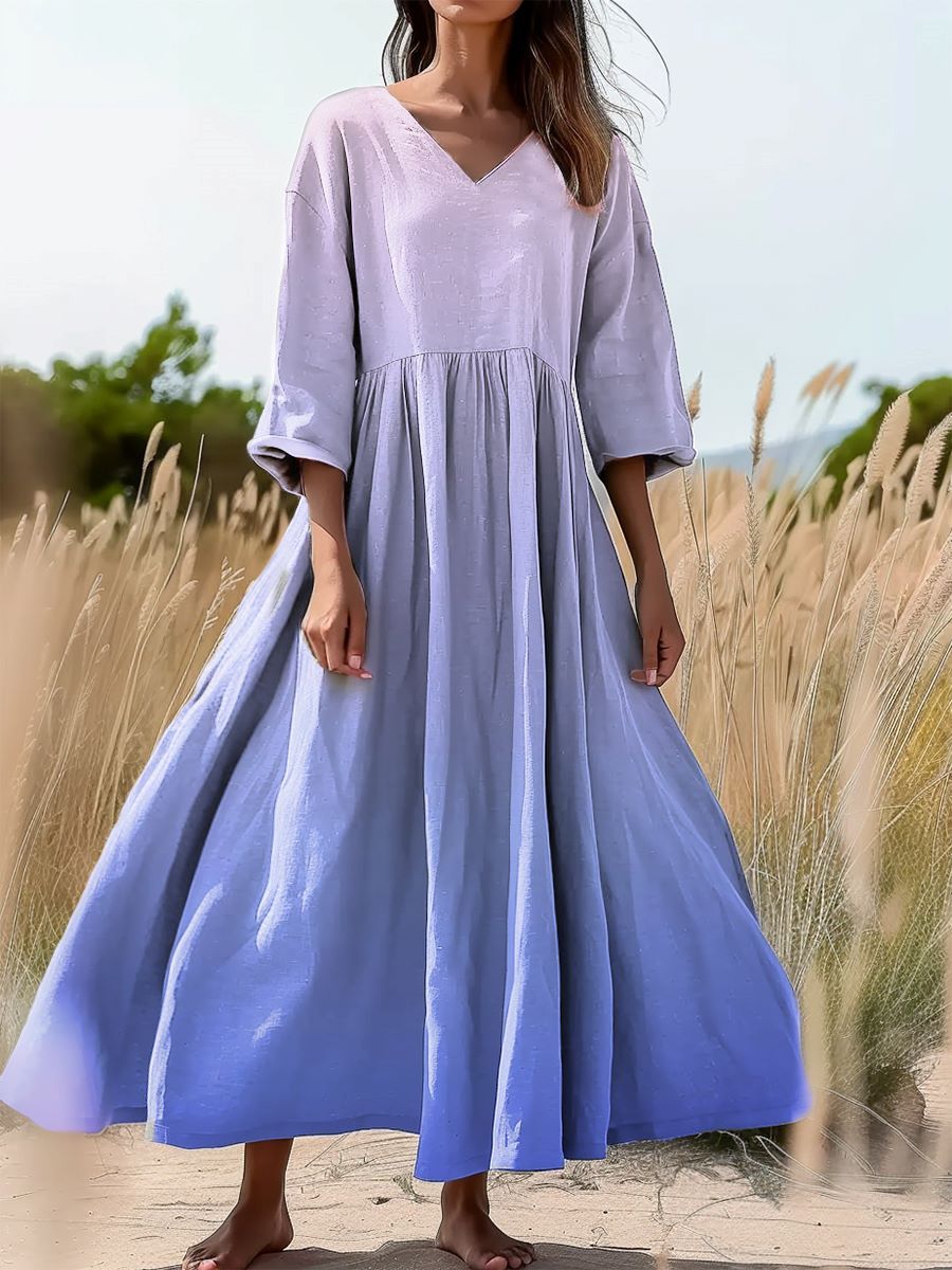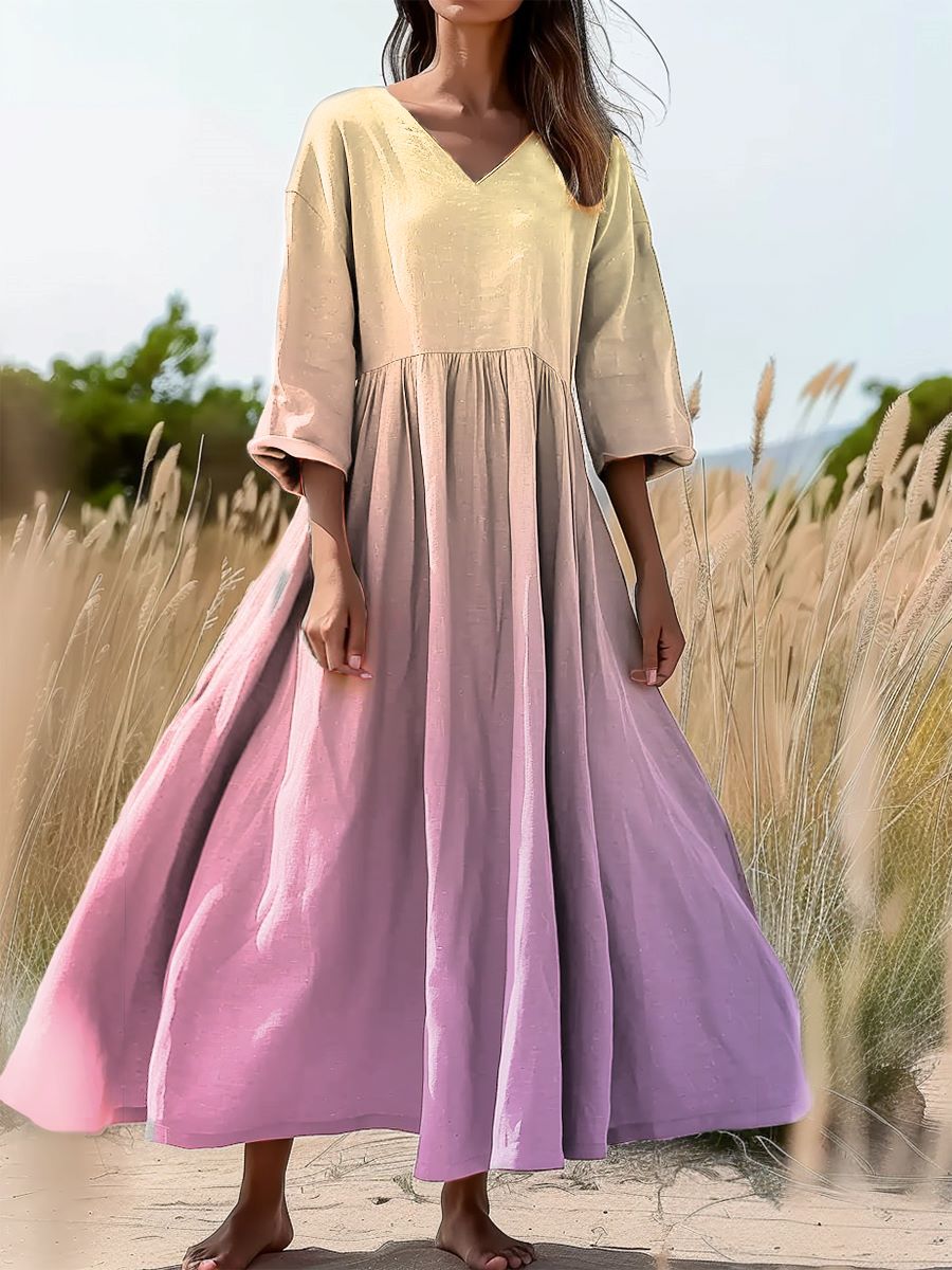 Women's Gradient Pattern Art Print Flowy V-Neck Cotton Dress
