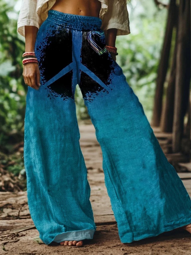 Women's Hippie Art Print V-neck Casual T-Shirt