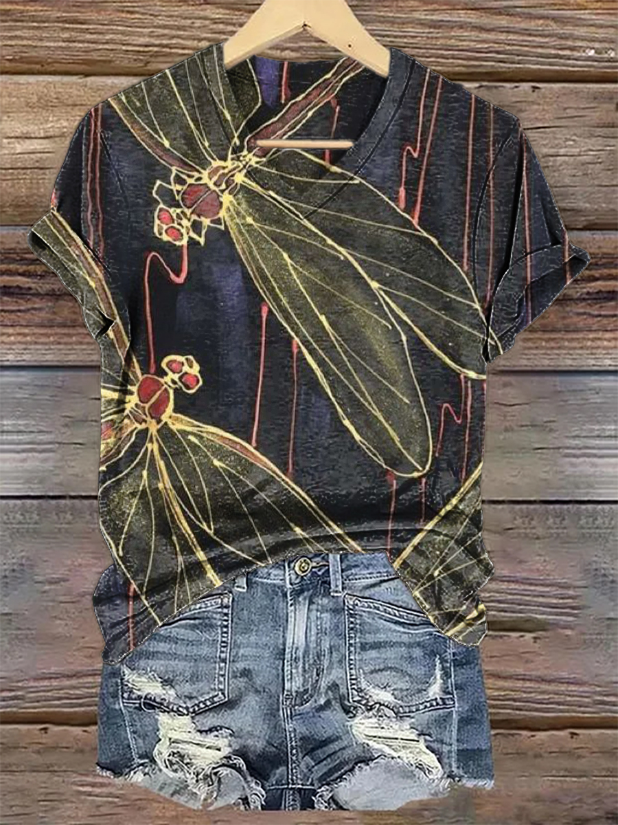 Women's Hippie Dragonfly Art Print Women's V-neck Casual T-Shirt