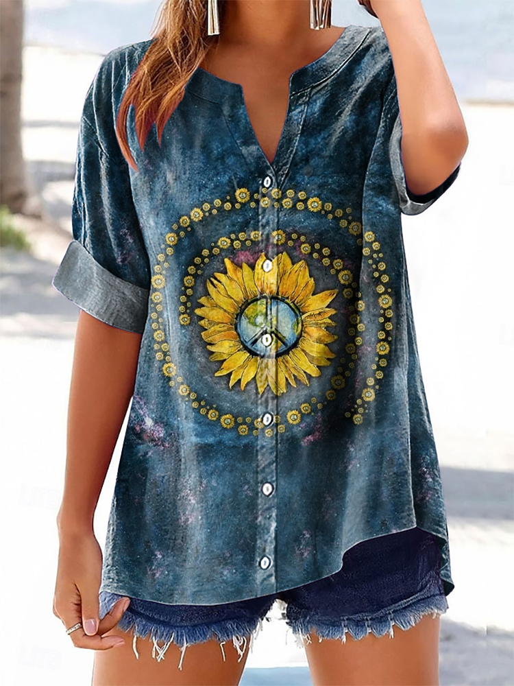 Women's Hippie Tie Dye Art Print Casual Cotton And Linen Shirt