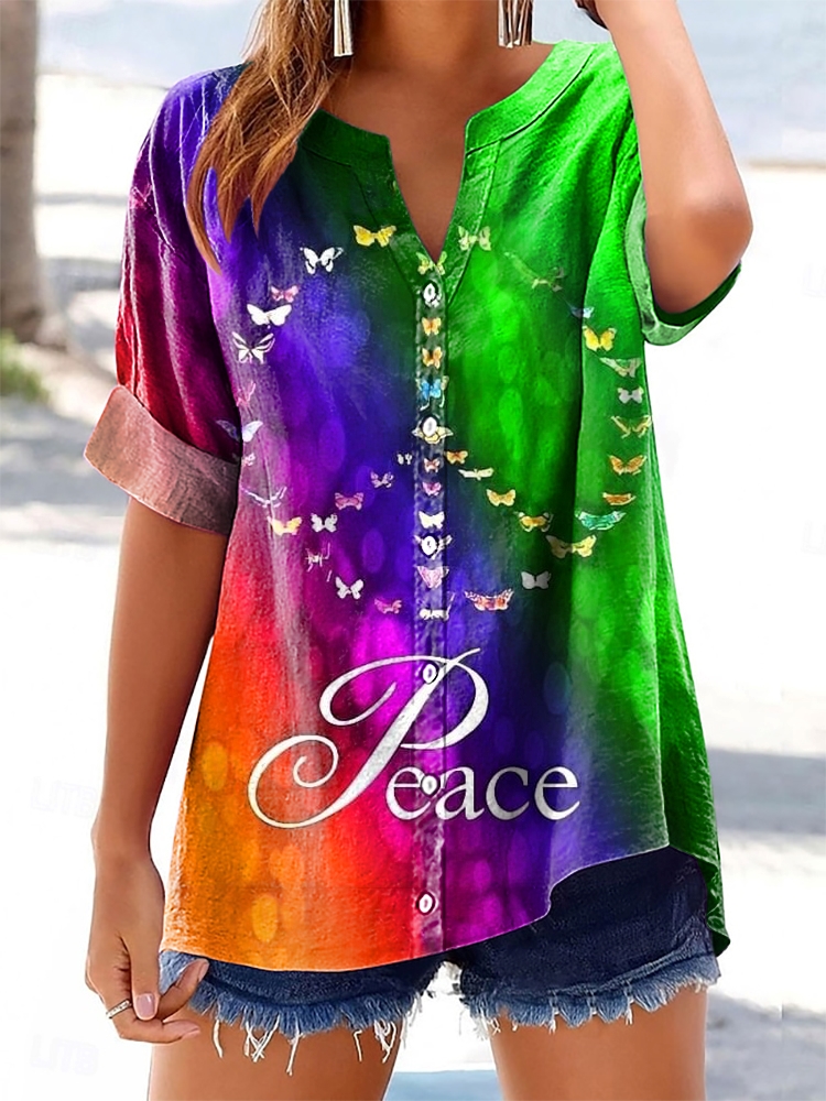 Women's Love Peace Hippie Pattern Art Print Cotton Linen Casual Shirt
