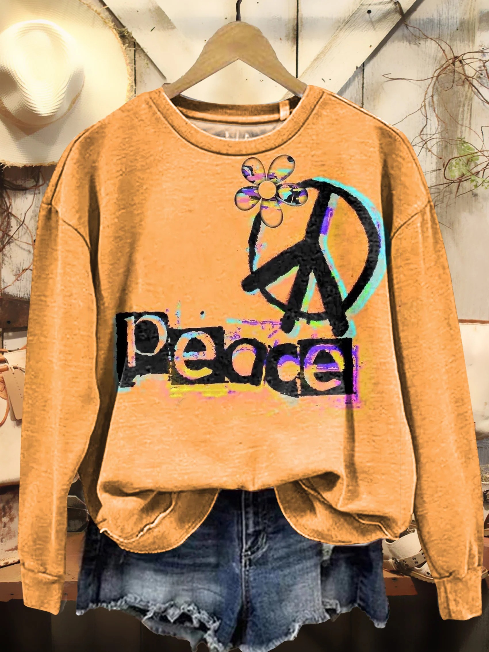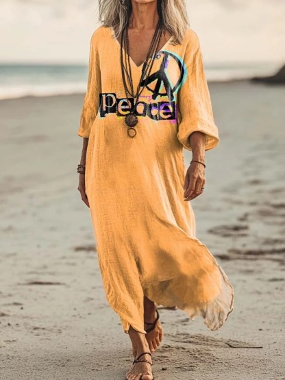 Women's Love Peace Hippy Art Print Cotton Crew Neck T-Shirt