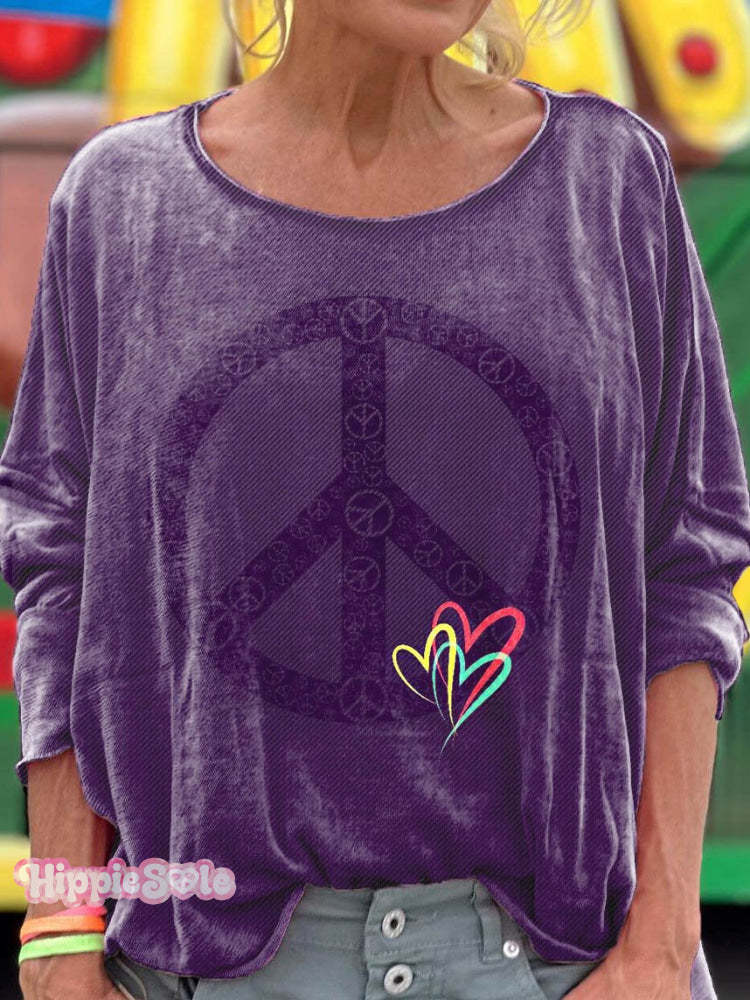 Women's Peace And Love Pattern Art Print T-shirt