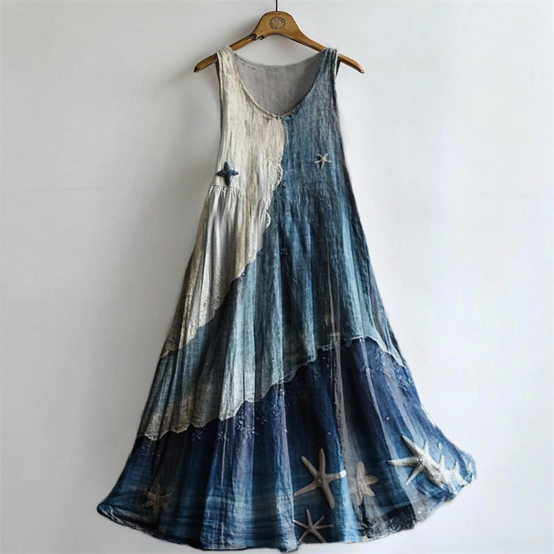Women's Starfish Gradient Pattern Art Print Round Neck Sleeveless Cotton Pocket Dress