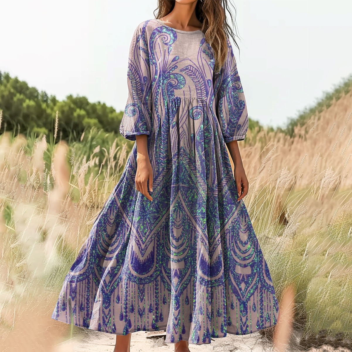 Women's Tattoo Pattern Art Print Cotton Crew Neck Dress