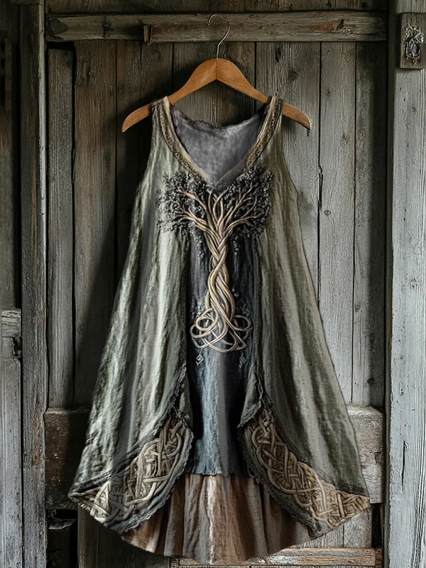 Women's Tree of Life Graphic Art Print V-Neck Pocket Cotton Dress