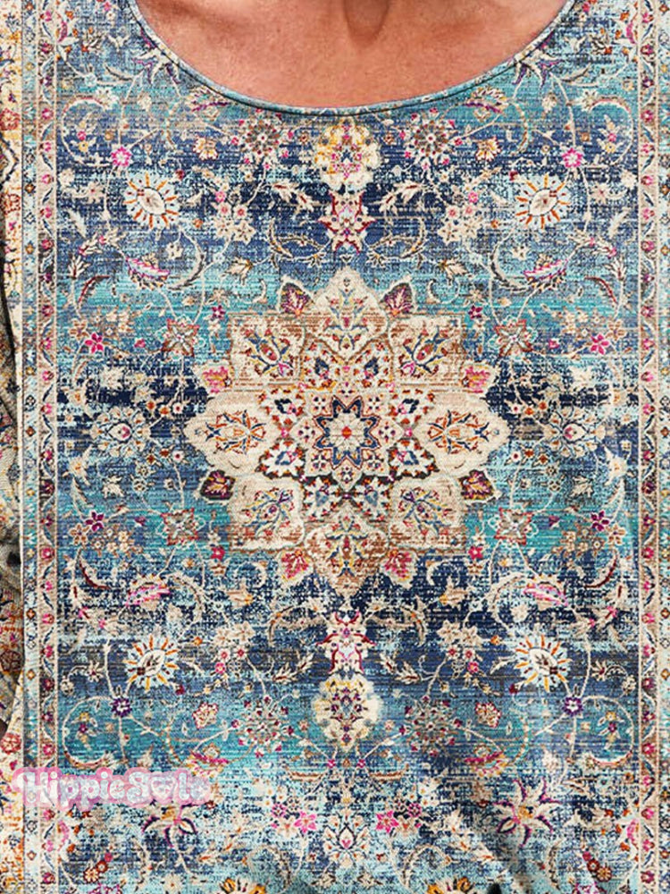 Women's Vintage Flower Pattern Art Print T-shirt