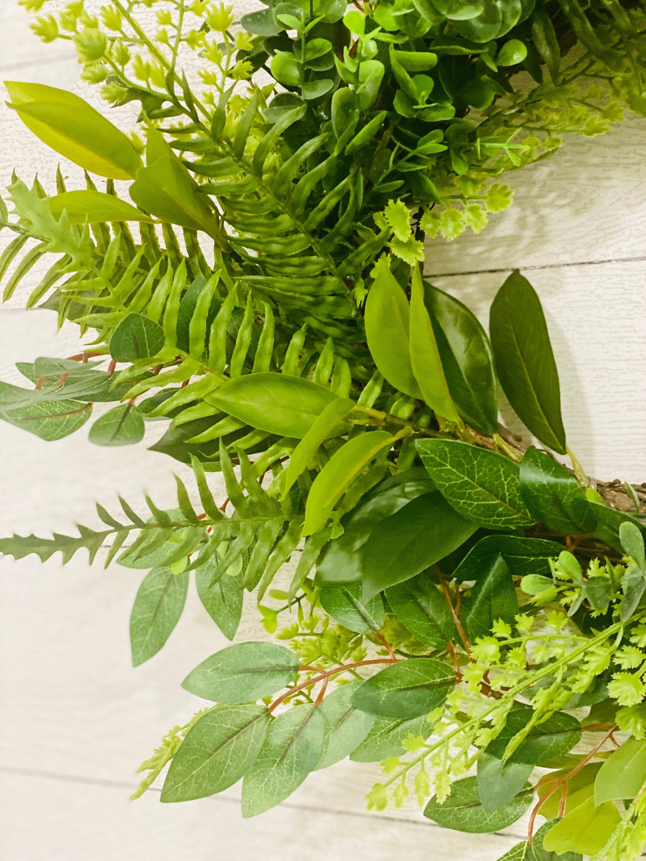 Bay Leaf and Fern Wreath - Handcrafted Greenery Wreath
